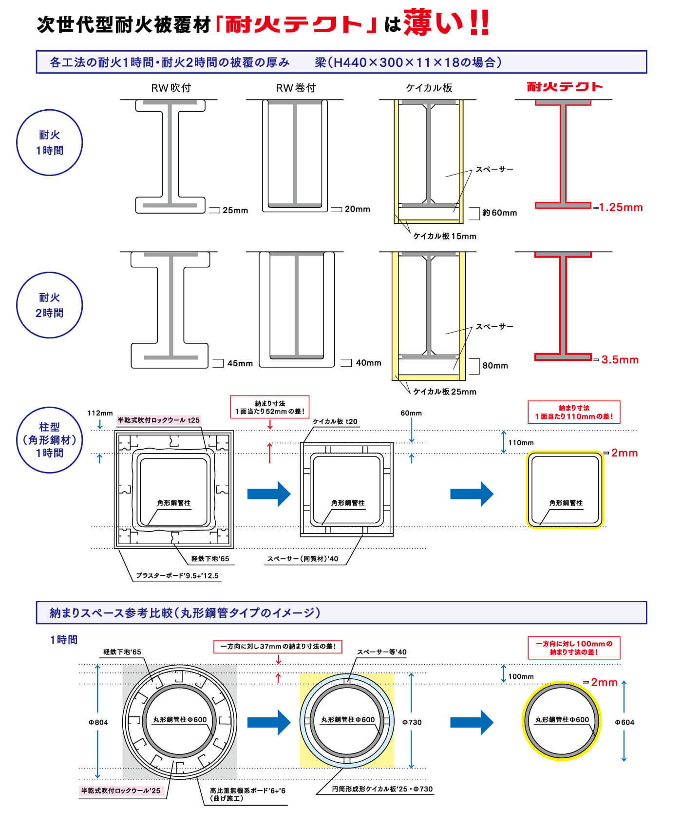 耐火テクトはそれらを満たす安心な耐火被覆材です。